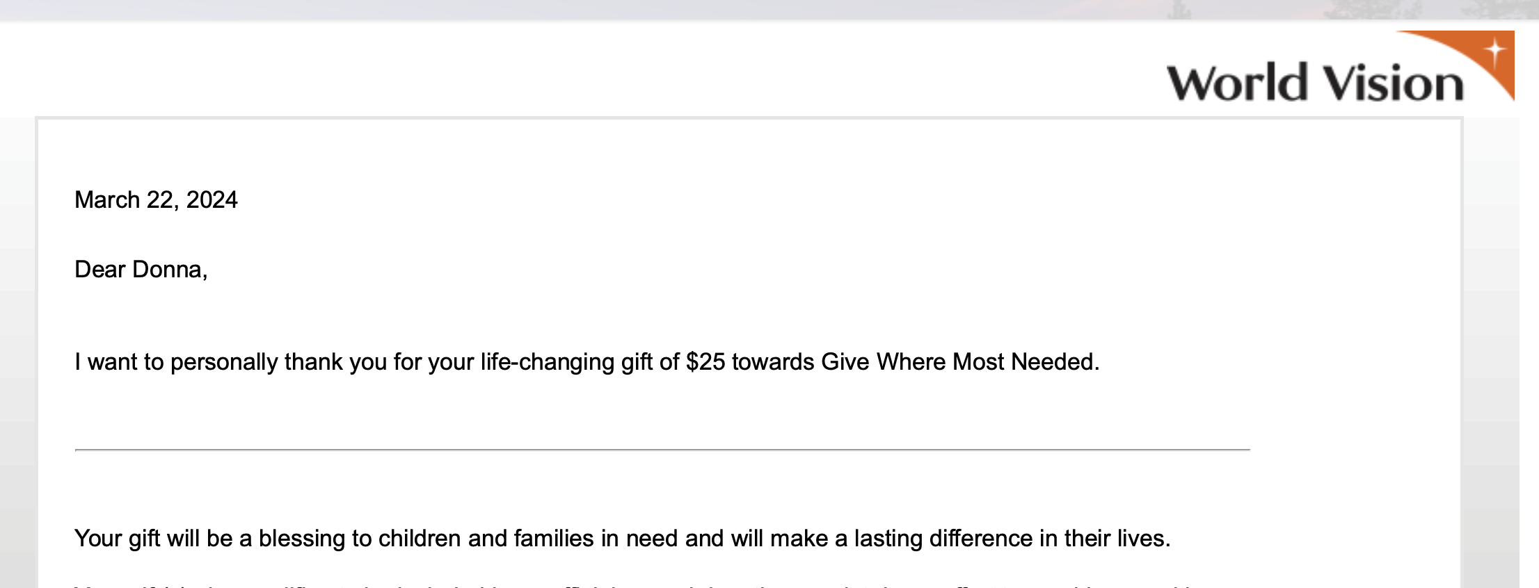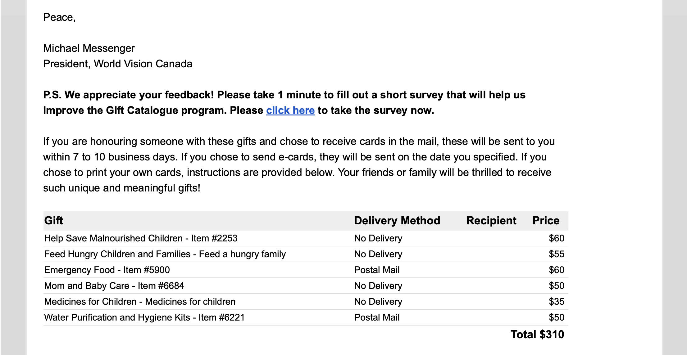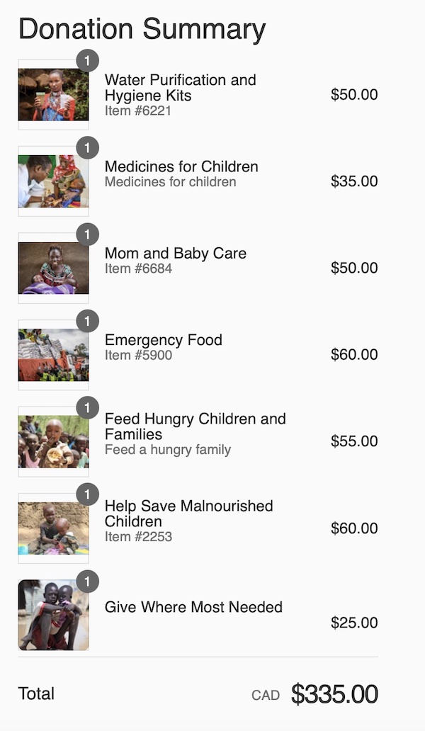 World Vision gift catalog Dallas Smith & Sam Roberts Band comfort doll project  Dallas Smith Sam Roberts Band Transparency Receipt Comfort Doll Project 2024 Dallas Smith Sam Roberts Transparency receipt Comfort Doll Project 2024